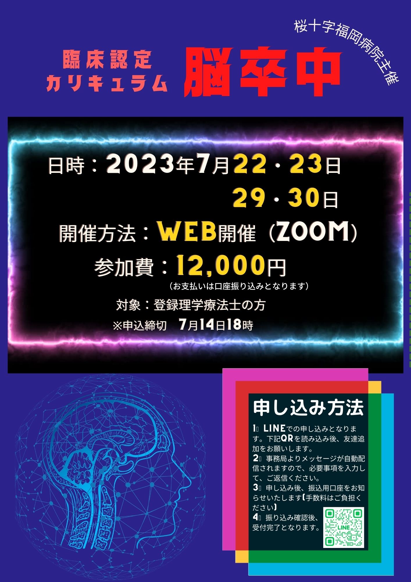 桜十字福岡病院は「認定理学療法士 臨床認定カリキュラム(分野:脳卒中)」の教育機関として認可を受けております。